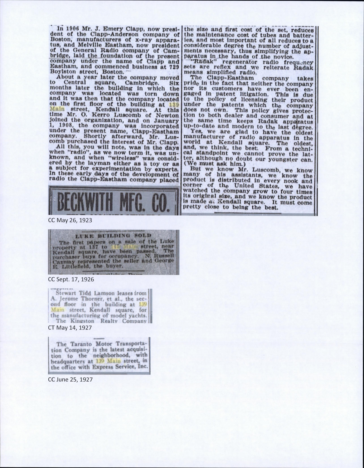 135-145 Main St - Published Material