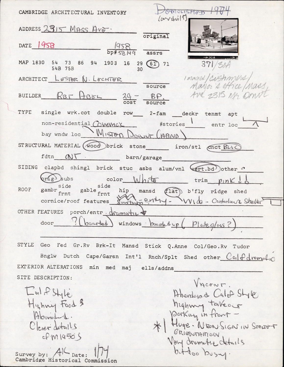 2315 Massachusetts Ave - Architectural Inventory Form