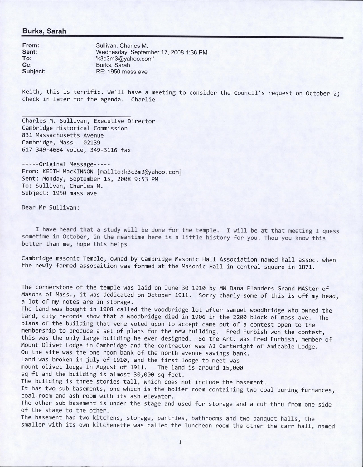 1950 Massachusetts Ave - Correspondence