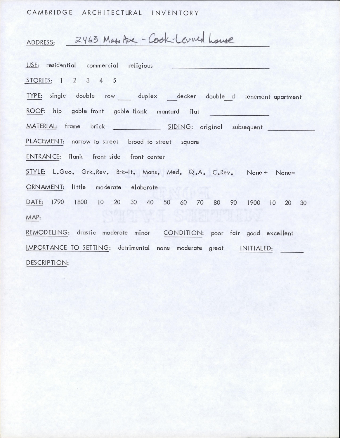 2463 Massachusetts Ave - Architectural Inventory Form