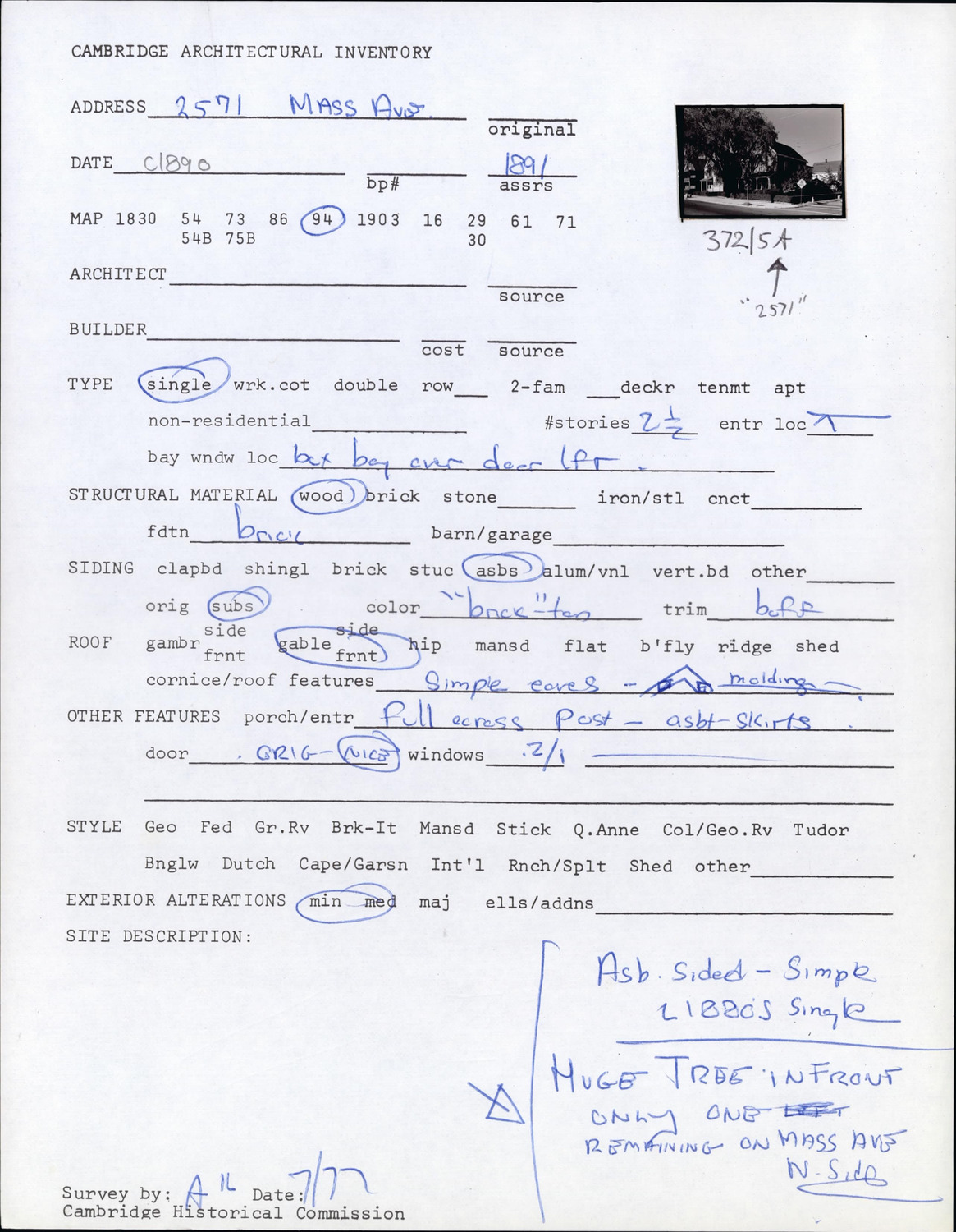 2571 Massachusetts Ave - Architectural Inventory Form