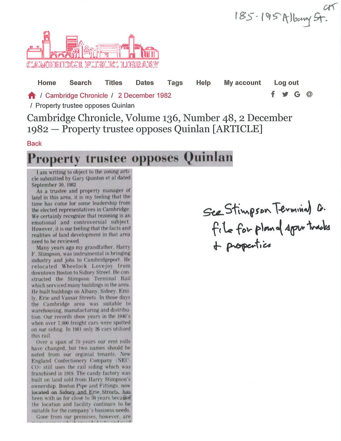 185-195 Albany St - Published Material