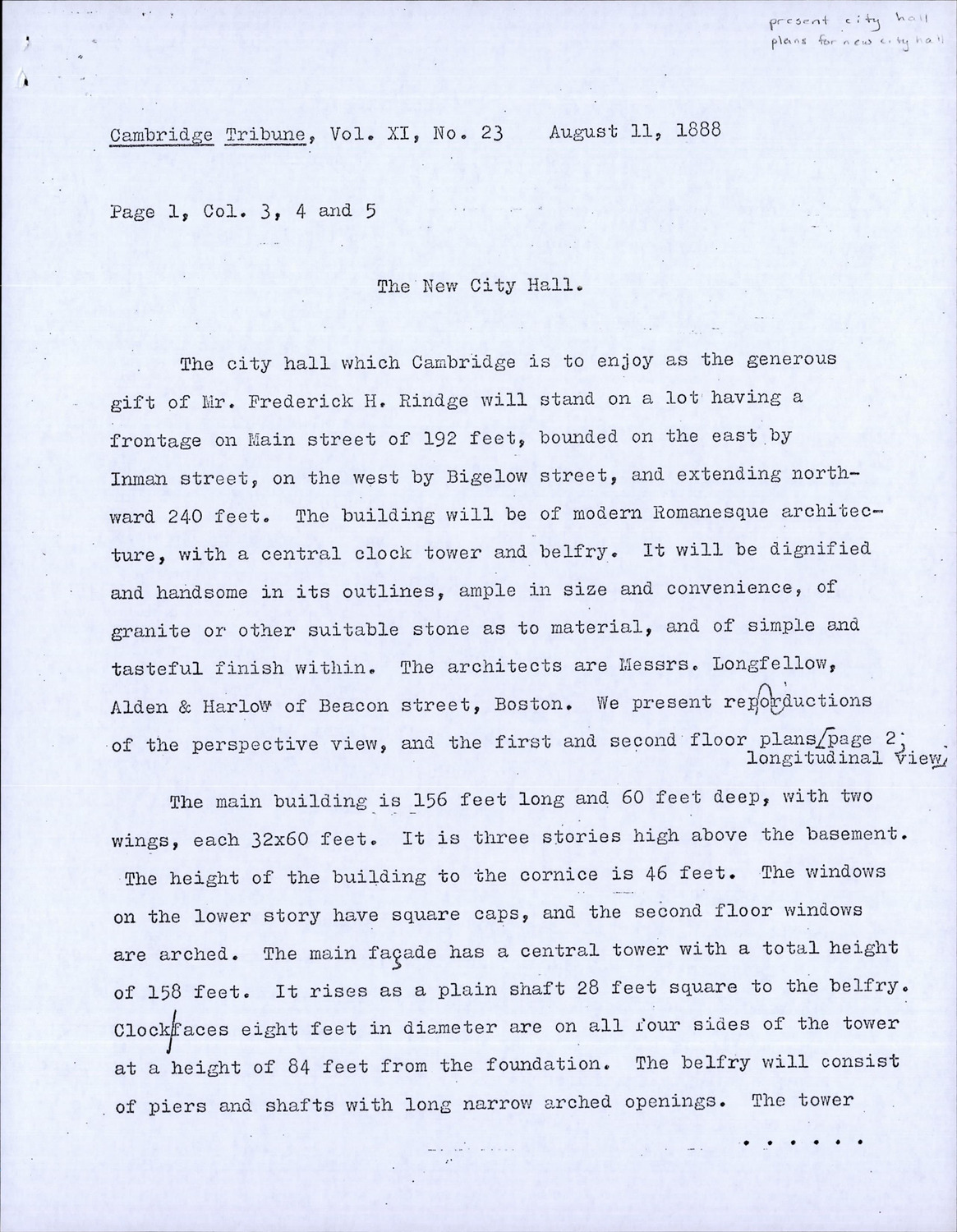 795 Massachusetts Ave - City Hall - Published Material